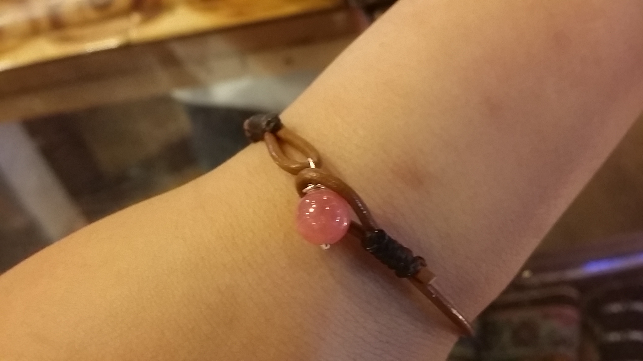こちらは、天然石とワックスコードでお作りしました。